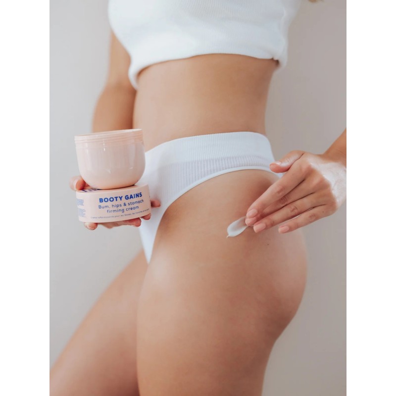 BOOTY GAINS Bum, Hips & Stomach Firming Cream Stangrinamasis kūno kremas, 240mlBOOTY GAINS Bum, Hips & Stomach Firming Cream Stangrinamasis kūno kremas, 240ml